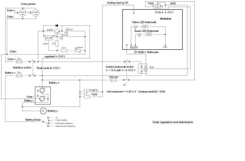 Boat batteries charging control with Arduino Schakelen zonnepaneel regulator