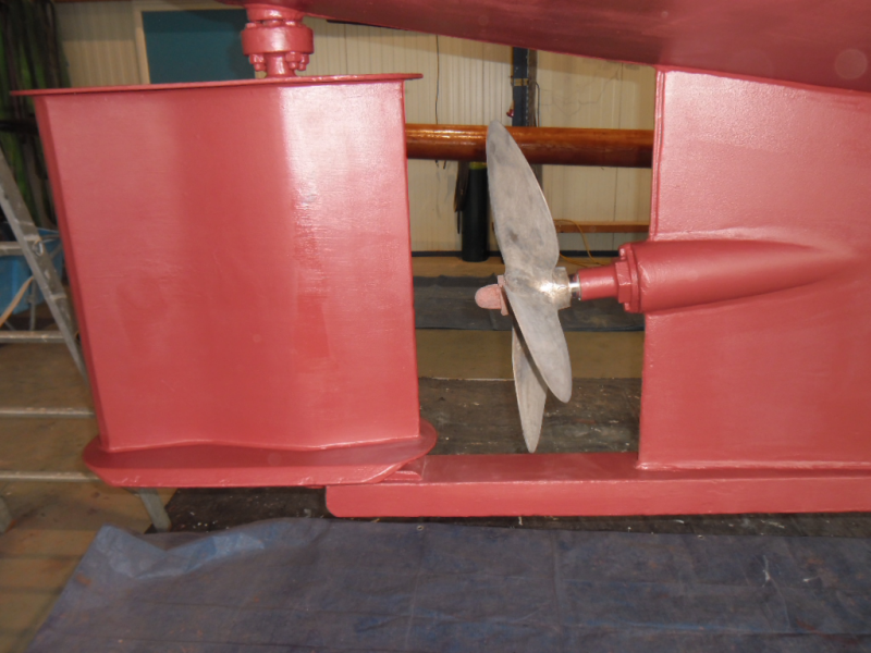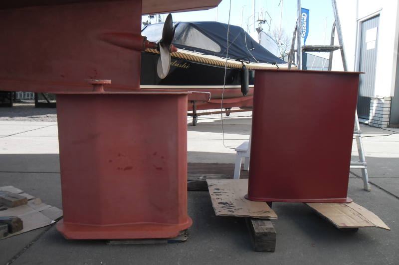 Het gewicht van het nieuwe roer (geschilderd): 36.5 kg (oude roer 51 kg)