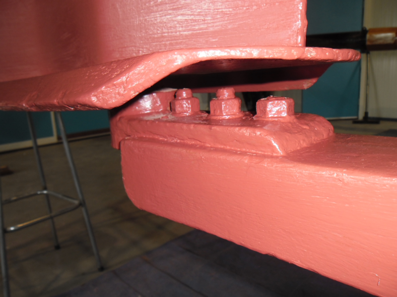 Het onderste gedeelte van de roerkoning vast gelast aan het korte hulpspant.