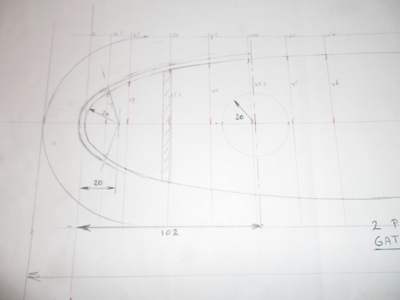 De plaats van de spanten werd op een 1:1 tekening van het NACA0018 profiel (op een werktafel) met behulp van een kunststof zeillat geverifieerd. Hierbij werd de lat vastgeklemd en gehouden op de plaats van de toekomstige bevestigingspunten (spanten) en gekeken of de daardoor gebogen lat, de vorm van het profiel correct strokend volgde.