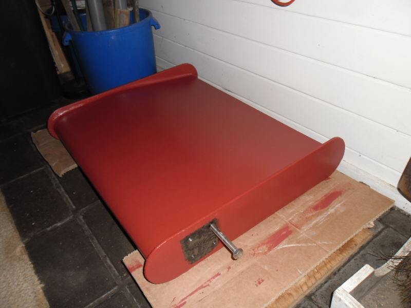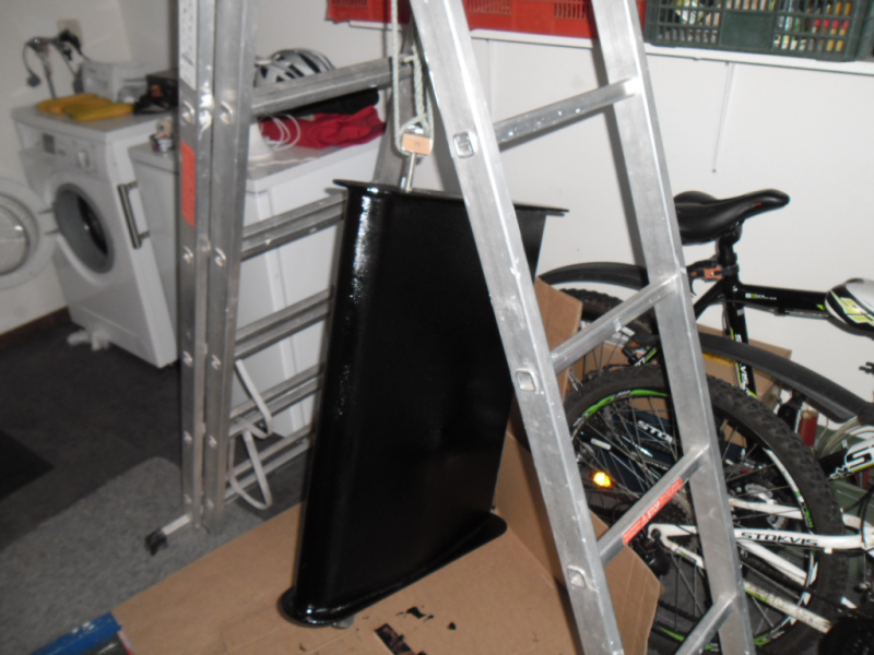 Vanwege het uitharden van de epoxy verf en een lage buiten-temperatuur is een deel van het schilderen binnen gedaan. Wel, tijdens het schilderen, met open deur want bij dit soort verf is goede ventilatie ècht een serieus punt!